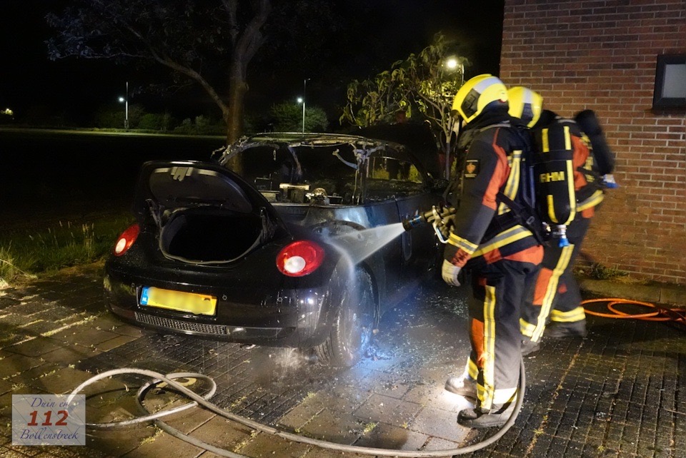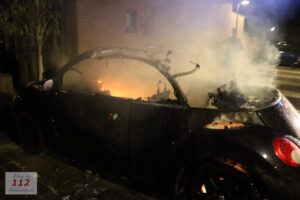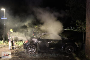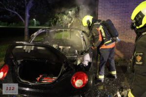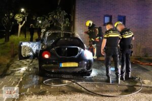 NOORDWIJK – In de nacht van vrijdag op zaterdag van 26 op 27 augustus is de brandweer uitgerukt voor een melding van een autobrand in de Hoekstand in Noordwijk. Daar bleek inderdaad een cabrio in de brand te staan. Een buurtbewoner was al begonnen met het blussen van de brand met een tuinslang. Een er naast geparkeerd staande werkauto is door de eigenaar verplaatst naar een andere plek, maar hij kon helaas niet voorkomen dat de werkauto geen schade opliep. De brandweer heeft ook deze auto enigszins moeten blussen, de rechterkant van de auto had vlam gevat. De eigenaar van deze auto is, vanwege rookinhalering, nagekeken door de ambulance die opgeroepen was. Hij hoefde gelukkig niet mee naar het ziekenhuis. De politie heeft ter plaatse samen met de brandweer de situatie bekeken en vermoedt wordt dat er sprake is van brandstichting.