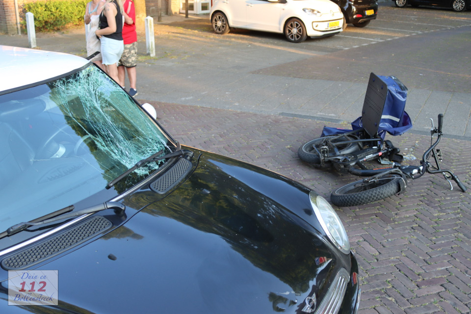 RIJNSBURG – Een bezorger op een fiets is maandagavond 12 juni lichtgewond geraakt na een ongeval in de Evertsenstraat in Rijnsburg. De jongen op de fiets werd aangereden door een auto maar mag enorm van geluk spreken, zijn letsel bleek minimaal.