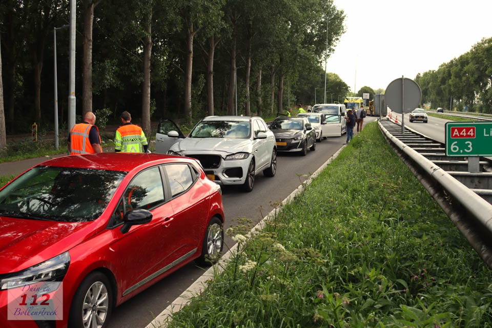 ABBENES – Vijf voertuigen zijn dinsdagmiddag 22 juli met elkaar in botsing gekomen op Afrit 2 Kaag-Dorp ter hoogte van Abbenes. Meerdere politie-eenheden, een ambulance en Rijkswaterstaat werden met spoed die kant opgestuurd.
