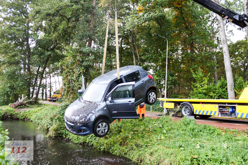 Een bergingsbedrijf moest eraan te pas komen om de auto weer op het droge te hijsen. Het voertuig liep door het ongeval veel (water)schade op. De bergingsdienst nam de auto mee.
