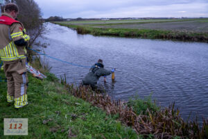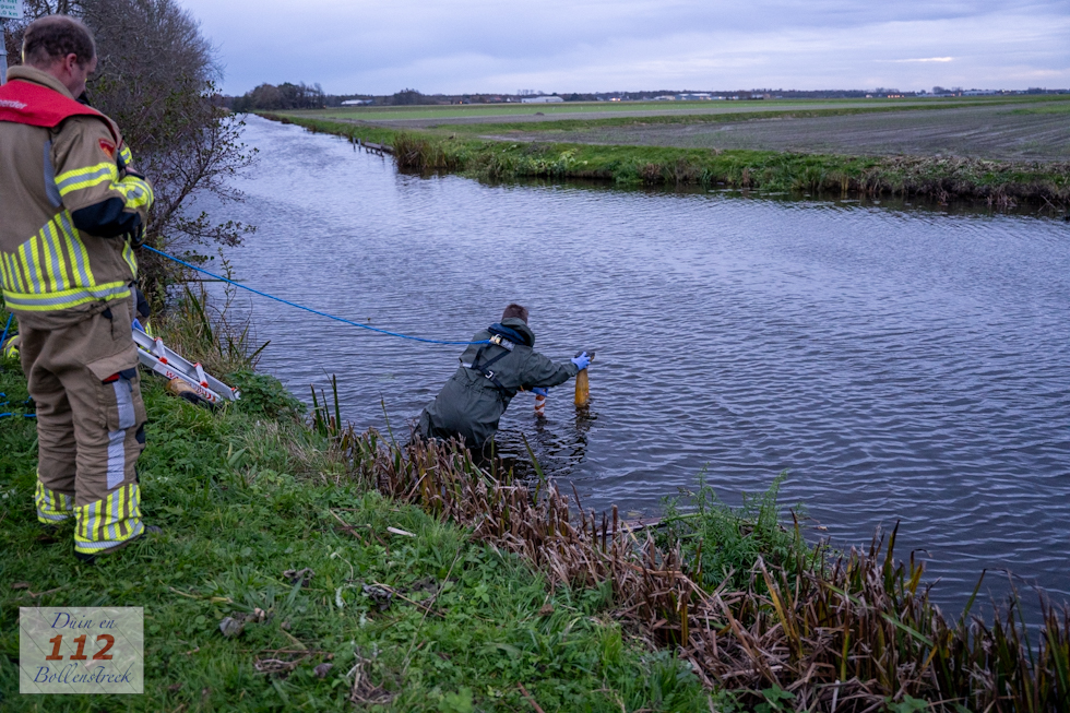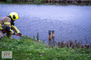 Na een klein onderzoek bleek het te gaan om twee rubberen laarzen die op z’n kop op twee houten paaltjes waren gezet. Een brandweerman is in waadpak het water ingegaan om de laarzen te verwijderen. De laarzen zijn ook meegenomen om te voorkomen dat de laarzen terug gezet gaan worden met alle gevolgen van dien.