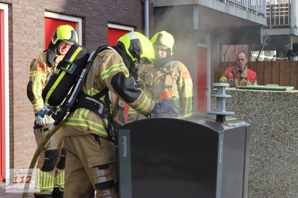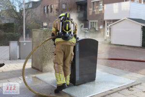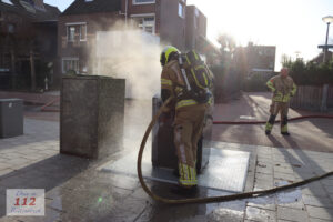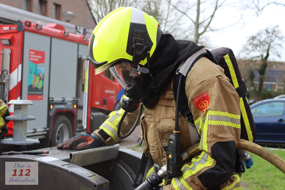 Brandweer blust containerbrand De Duinsloot Noordwijkerhout