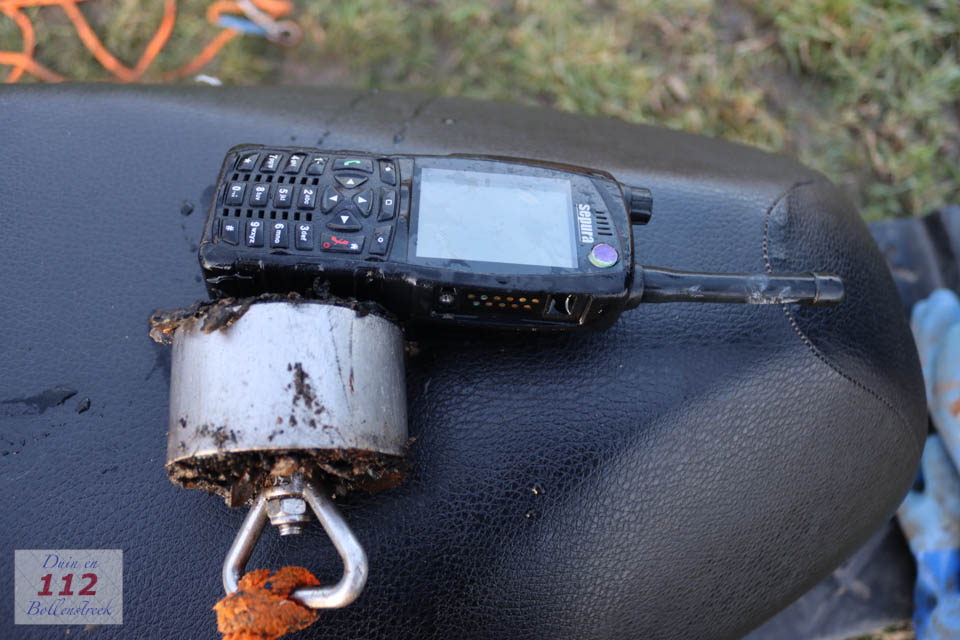 Gewapend met een magneet ging de persfotograaf op zoek en bij de vierde worp was het raak. De politieportofoon hing bij het naar boven halen van het touw aan de magneet. Tot zijn verbazing werkte de portofoon na ruim vijf dagen in het water gelegen te hebben nog. De vondst werd gelijk gemeld bij de politie waarna de portofoon bij de rechtmatige eigenaar bij het politiebureau in Lisse werd afgegeven. Hun dank was groot.