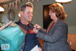 Voor burgemeester Carla Breuer is dit haar laatste korpsmiddag-/avond bij brandweer Warmond. Zij werd in het zonnetje gezet met mooie woorden en leuke cadeaus. Uiteraard werden naast de vrijwilligers ook het thuisfront van de brandweerlieden bedankt door ploegchef Rob van Duyn.