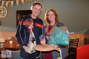 Britt de Nie en Rob van Duyn kregen bloemen vanwege hun inzet als Lokale Collegiale Ondersteuner.