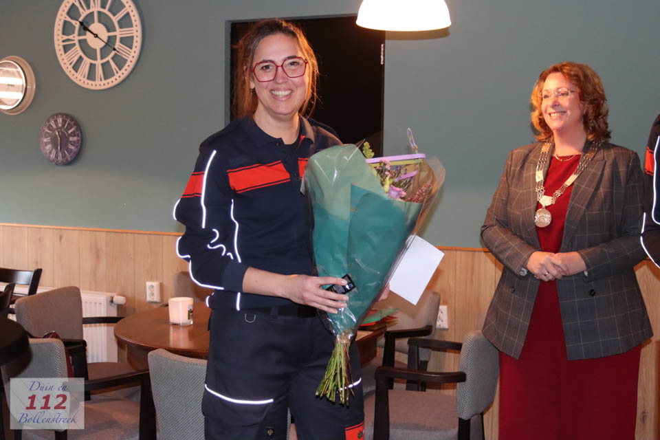 Voor burgemeester Carla Breuer is dit haar laatste korpsmiddag-/avond bij brandweer Warmond. Zij werd in het zonnetje gezet met mooie woorden en leuke cadeaus. Uiteraard werden naast de vrijwilligers ook het thuisfront van de brandweerlieden bedankt door ploegchef Rob van Duyn.